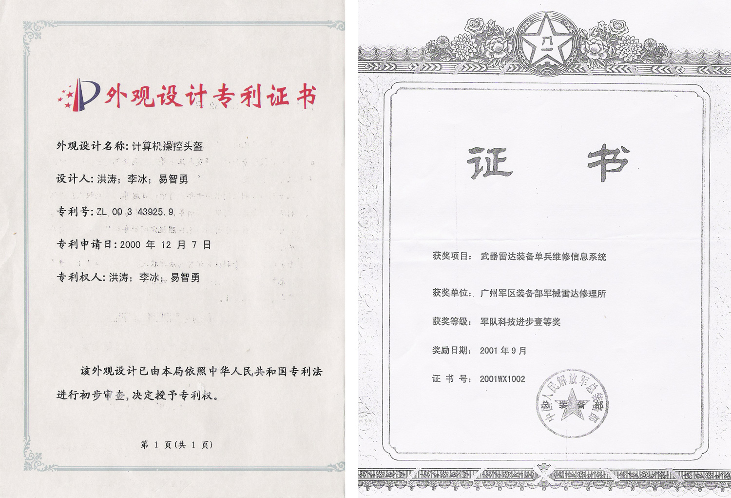 部分獲獎(jiǎng)證書